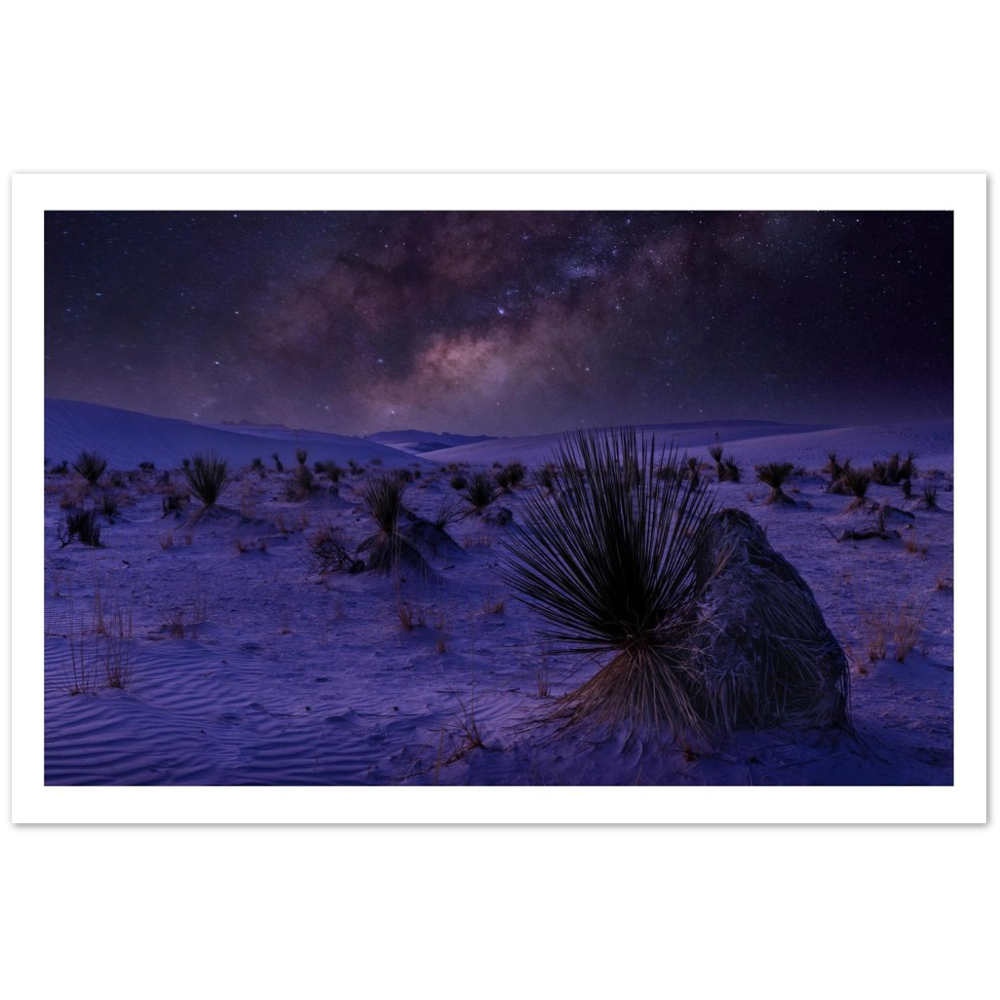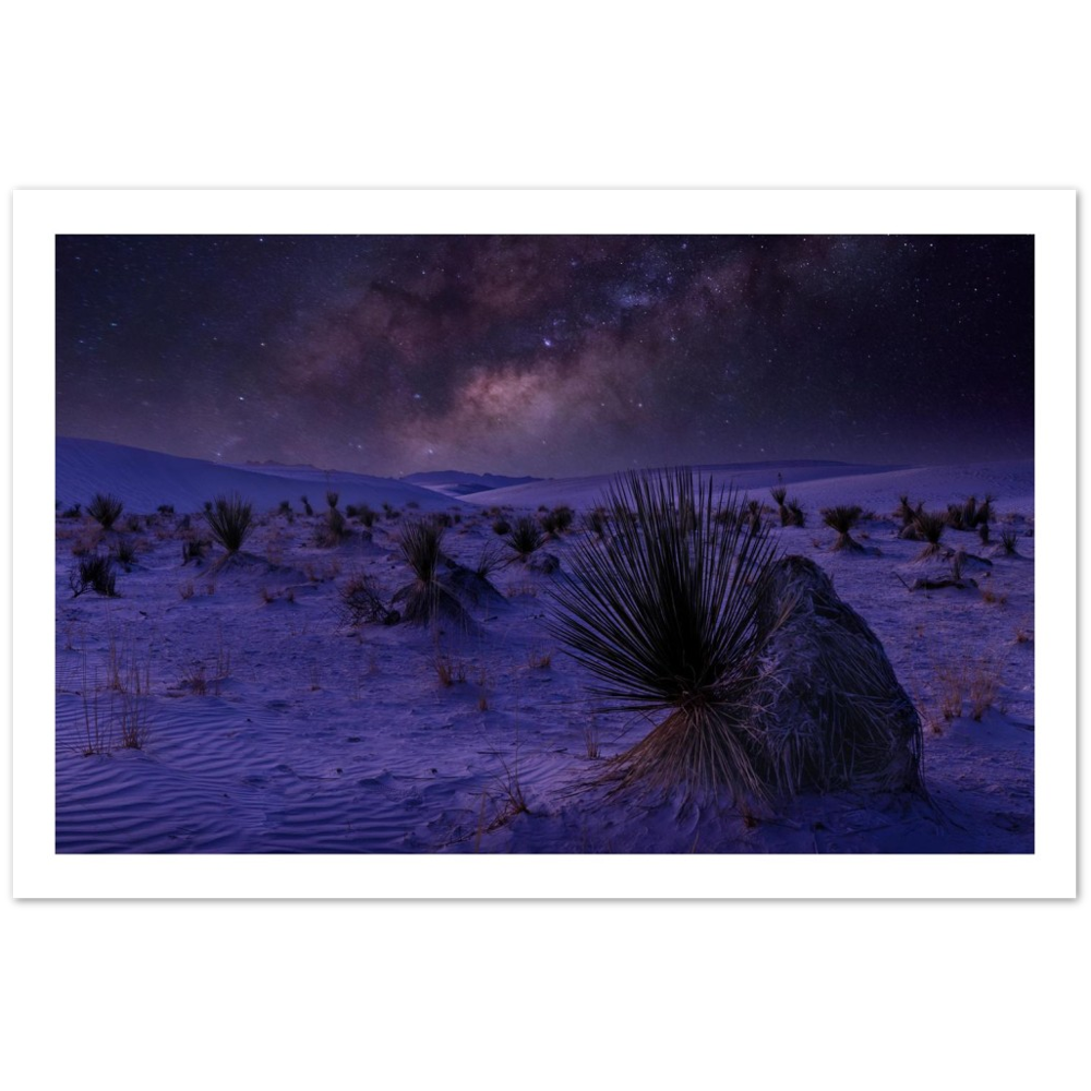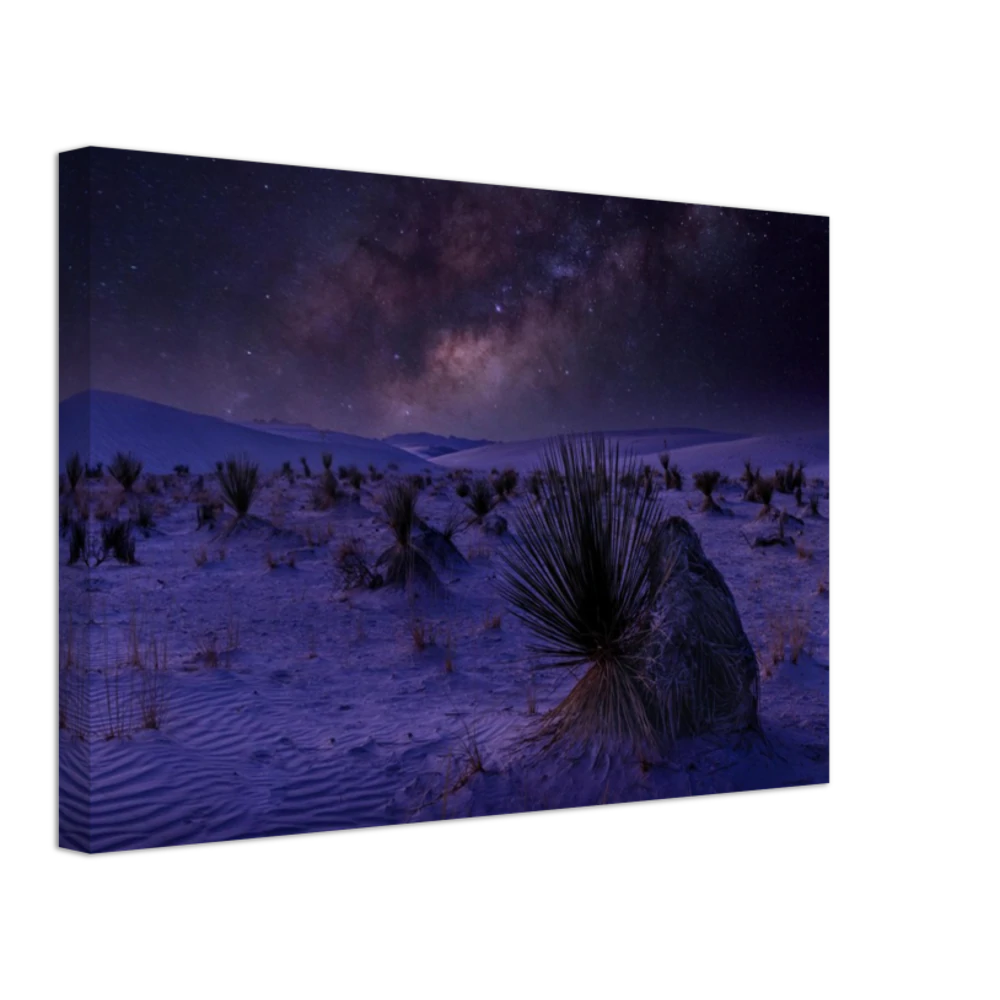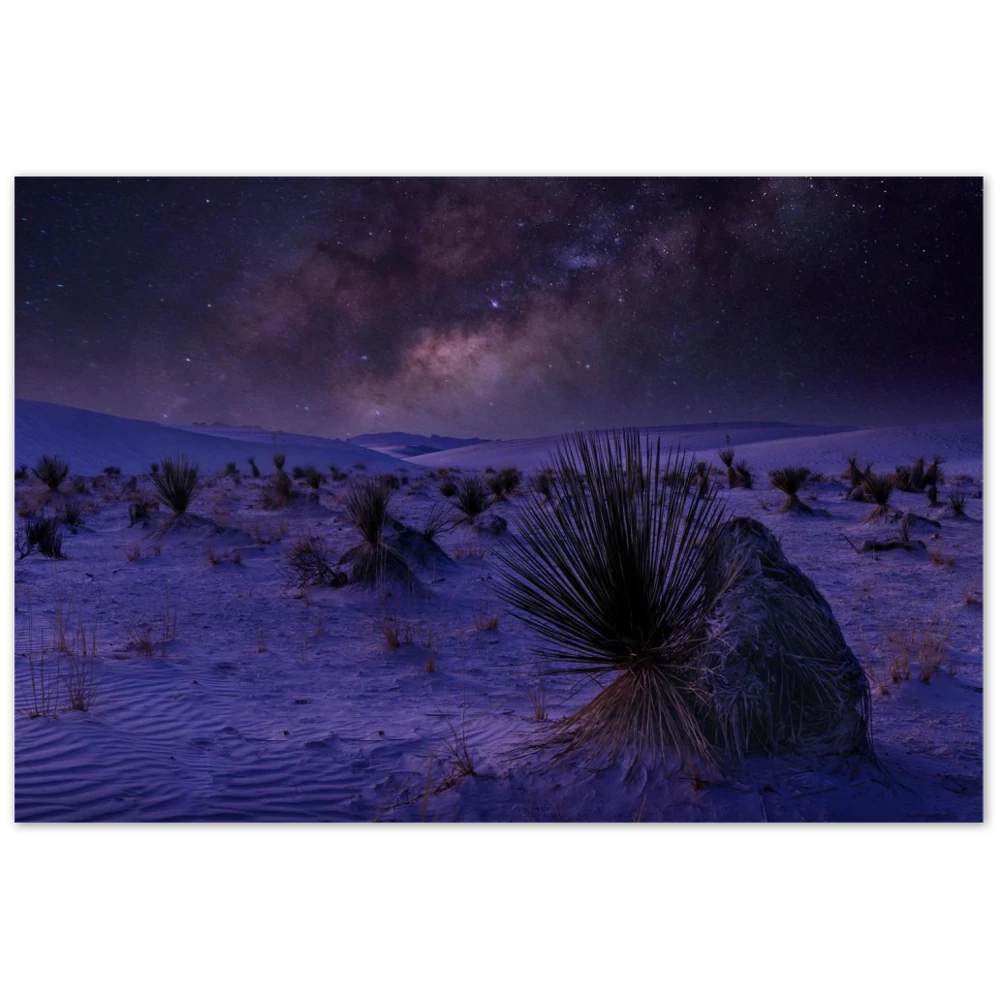 I should have realized this immediately when I drove among the impossibly white dunes and saw a camel holding court near one of the parking lots. Or when I hiked the Alkili Flats to the giant sign reminding everyone that a big part of the park is a missile testing range.Add this awe-inspiring moment to your home decor. With this milky way galaxy wall art, you’ll be able to experience this park’s unique flora and stunning dark skies every day.