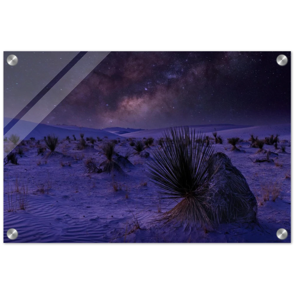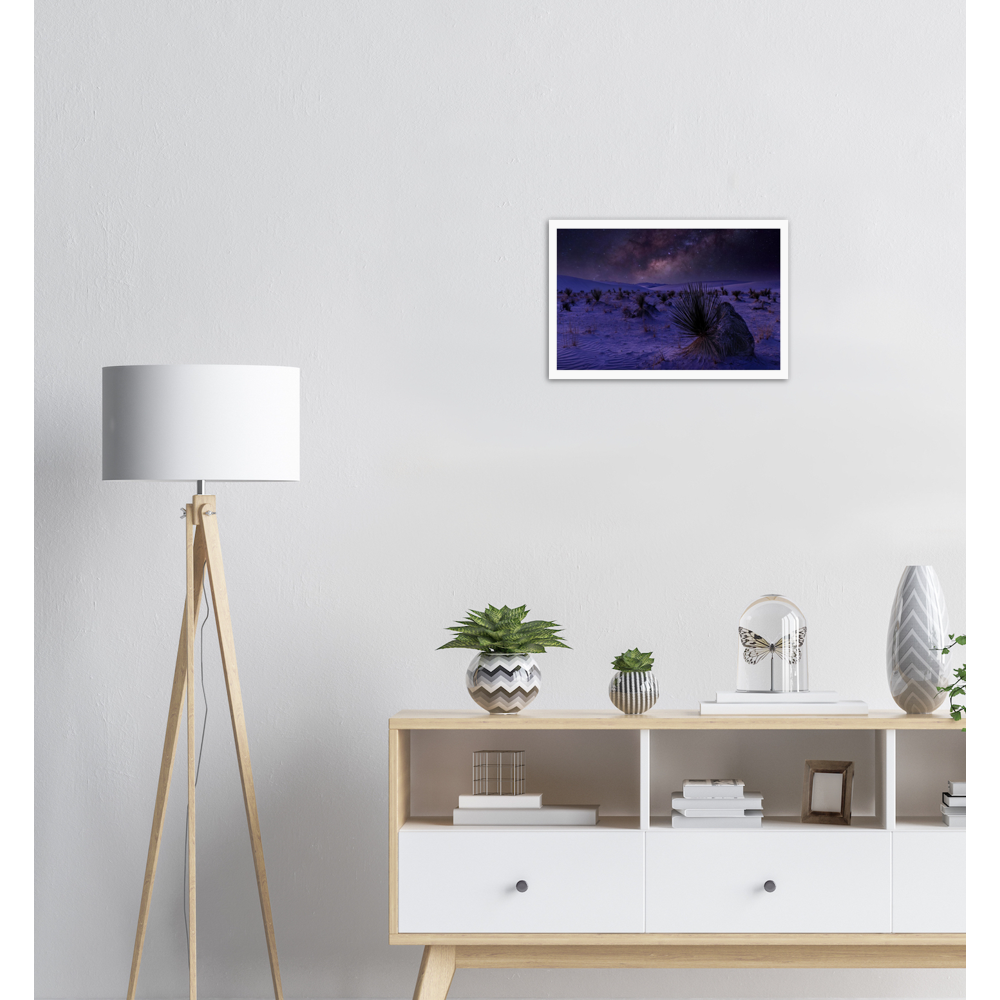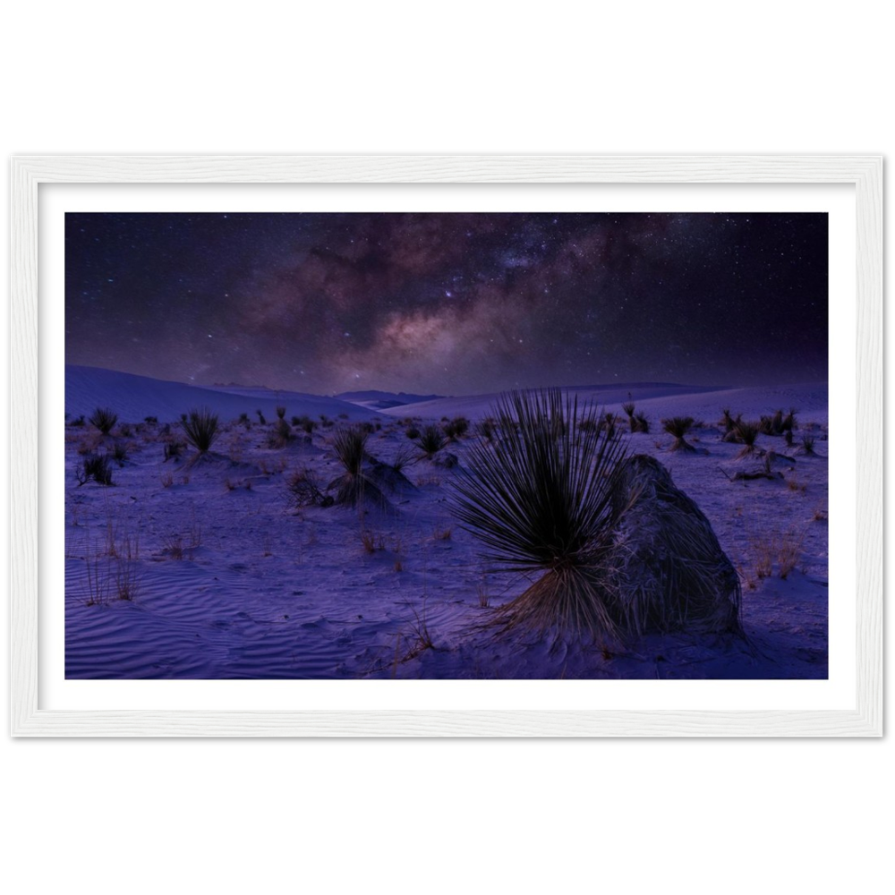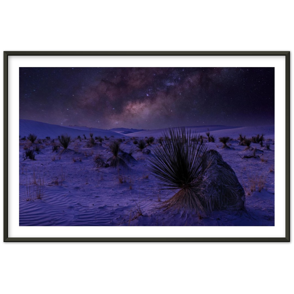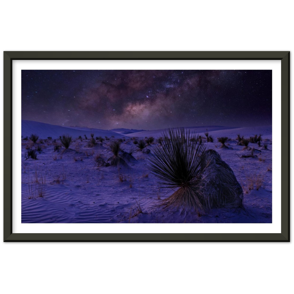 I should have realized this immediately when I drove among the impossibly white dunes and saw a camel holding court near one of the parking lots. Or when I hiked the Alkili Flats to the giant sign reminding everyone that a big part of the park is a missile testing range.Add this awe-inspiring moment to your home decor. With this milky way galaxy wall art, you’ll be able to experience this park’s unique flora and stunning dark skies every day.