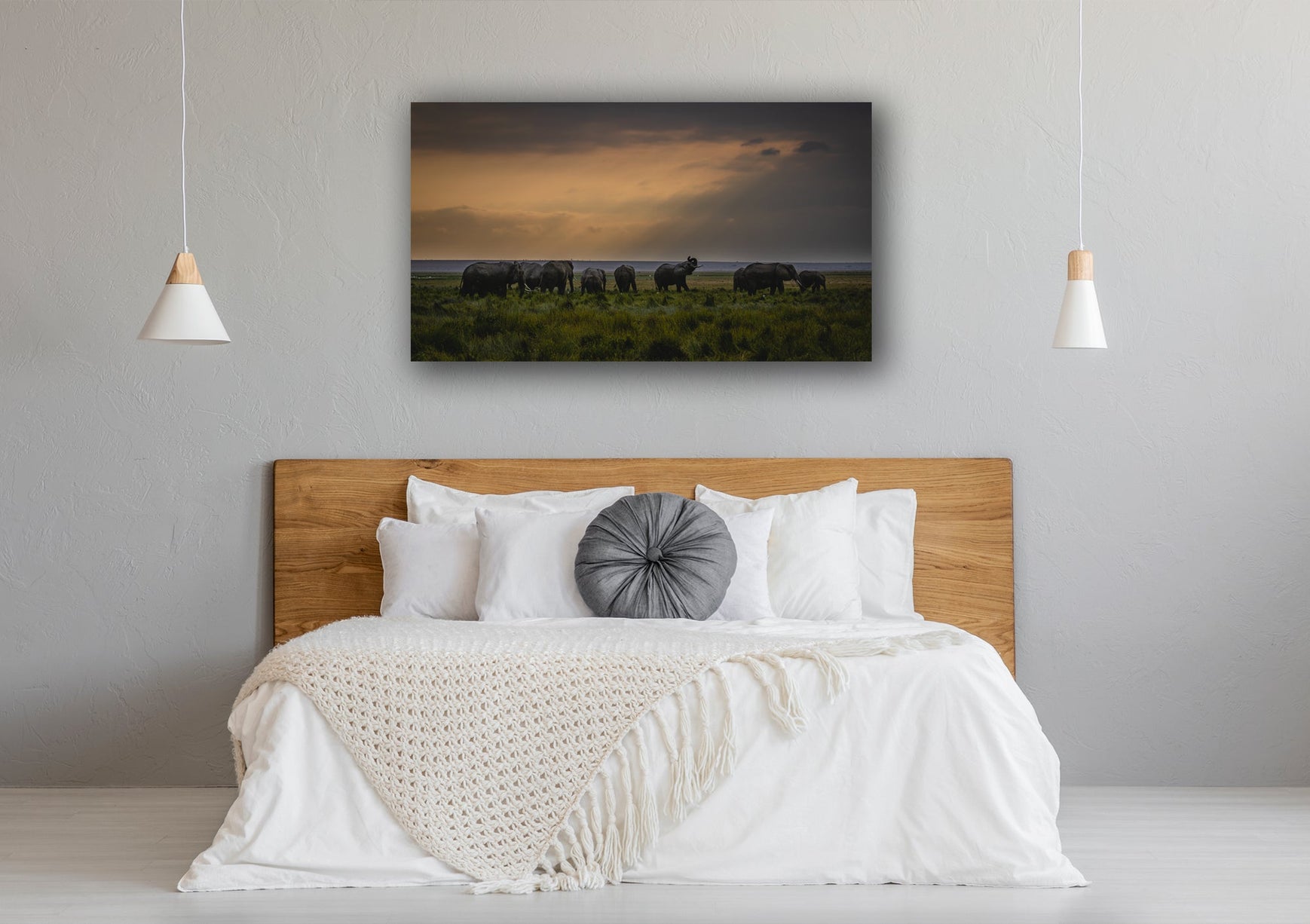 Bring the quiet magic of the gentle giants of Amboseli National Park Kenya, into your home. With this elephant art, you’ll be able to enjoy this majestic moment every day.