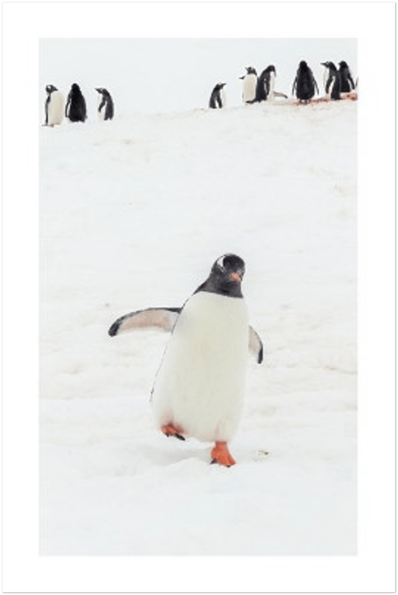 "Gentoo, Incoming" was taken during one of the many, many opportunities to watch the Gentoo penguins' behavior up close. They followed well worn penguin highways between nests and the water. The squawked at each other over territory. They bent low in greeting. They'd wander over to where we sat, quiet sometimes venturing within feet of us.